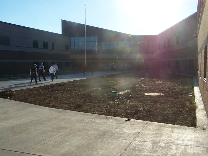 Viewing from "The Bridge" towards Blue Avenue - landscaping in